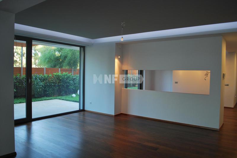 Апартаменты расположены на цокольном и первом этажах и включают 3 спальни, 2 ванные комнаты, гостевой санузел, а также два парковочных места.